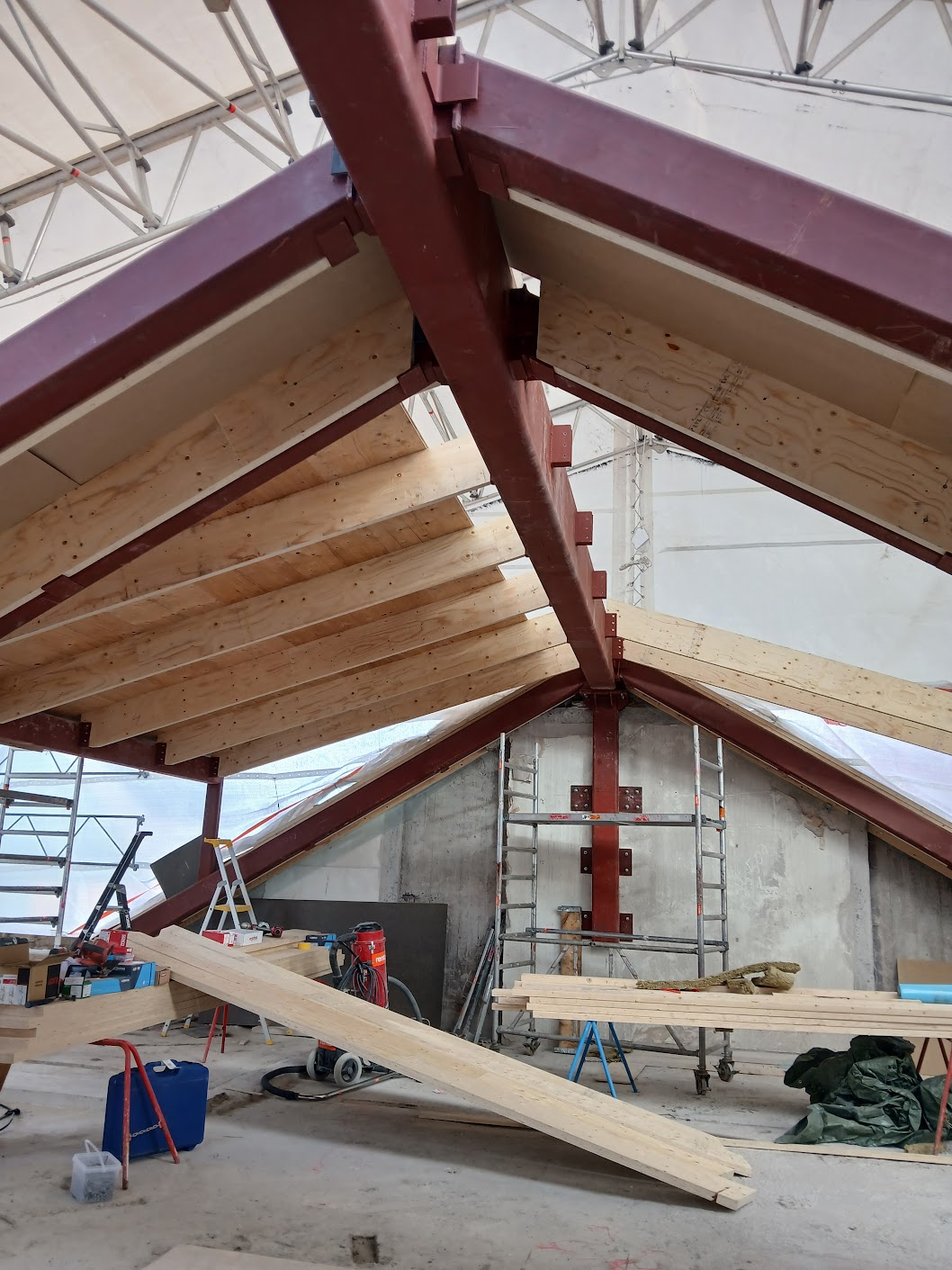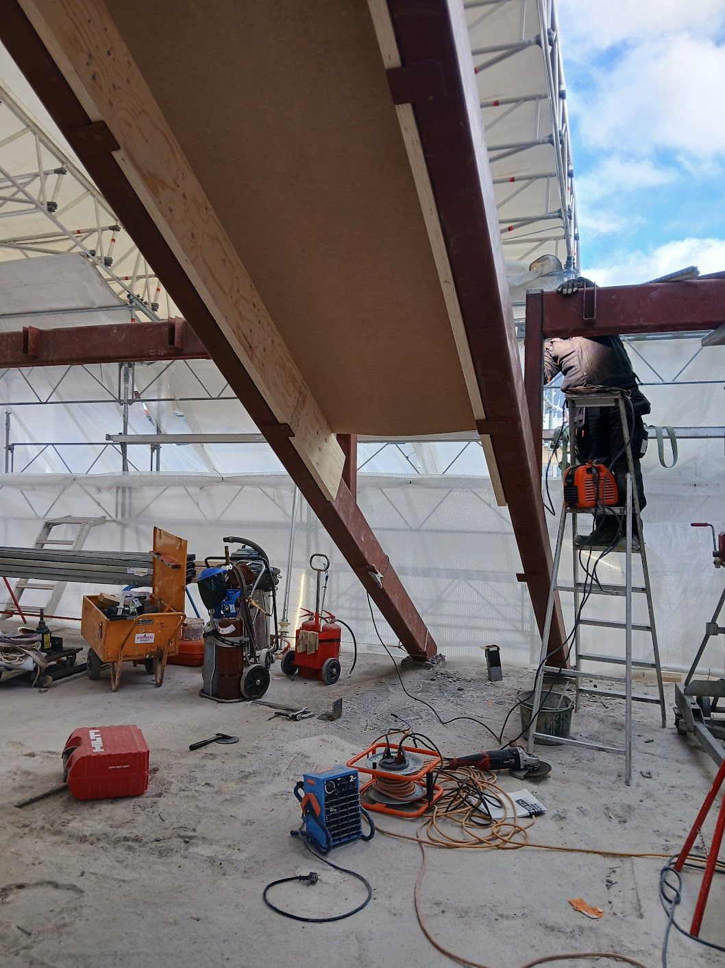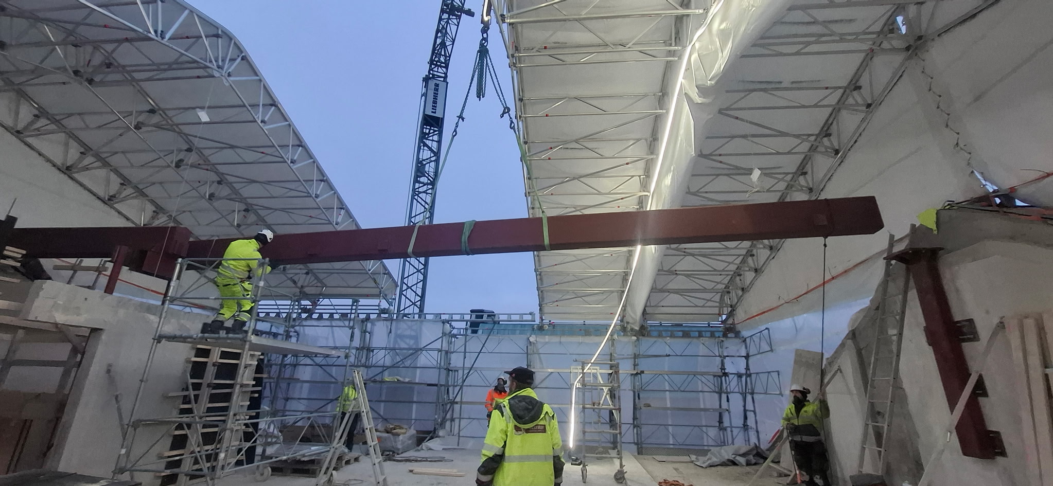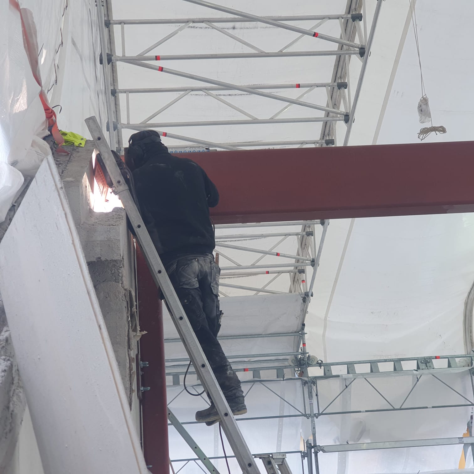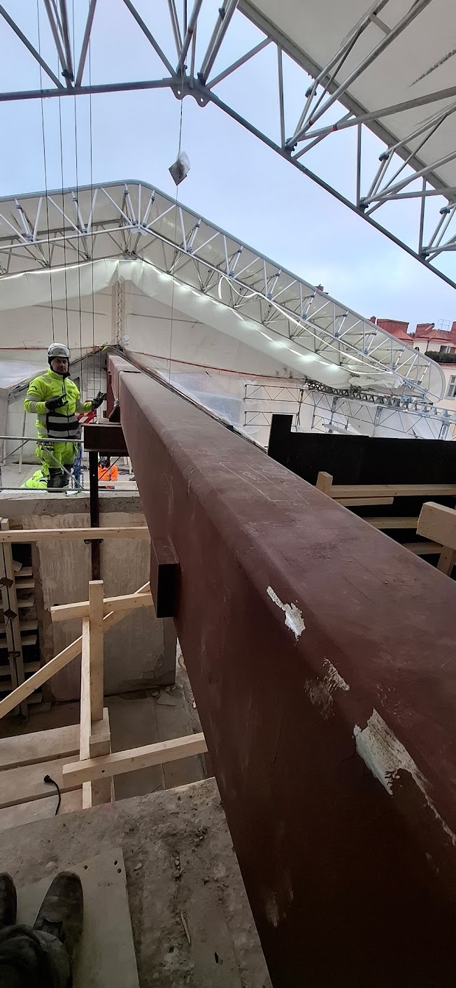 Våra Smeder hjälper just nu vår samarbetspartner Bygg R1 med att montera avväxlingsbalkar i ett 8 våningshus inne i centrala Stockholm. balkarna förbereds på verkstan och forslas sedan med kranbil till arbetsplatsen .